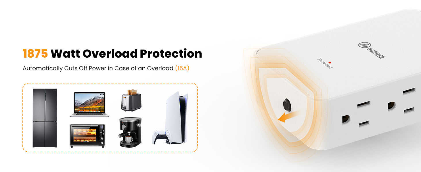 Outlet Splitter with 6 AC Side Outlets and USB C